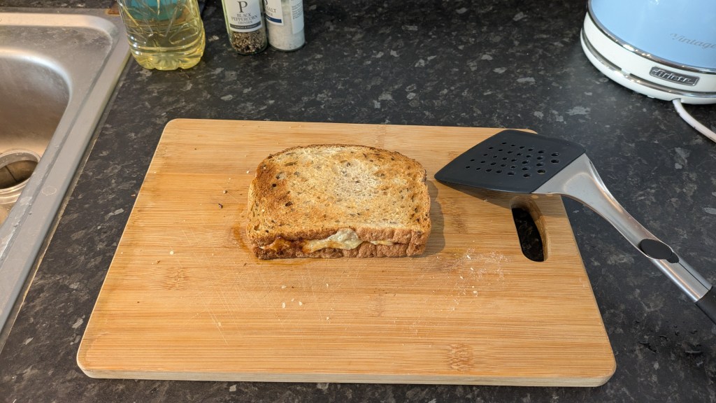 My test cheese sandwich was made of thickly sliced mature cheddar, with each slice around 0.4cm thick. For bread, I’d used a seeded bloomer loaf from Aldi.